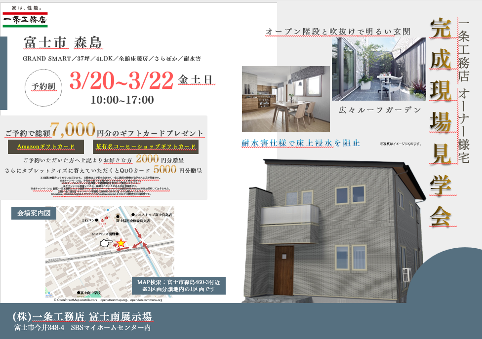富士、富士宮を中心とした地元工務店と大手ハウスメーカーの全17社が、実際に手掛けた家を見学できます。